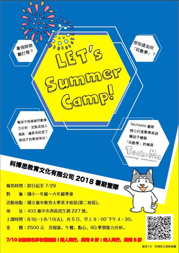 2018 TechxMa 塔思瑪創意玩數學 暑期桌遊營 課程安排與規劃